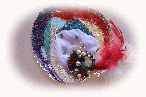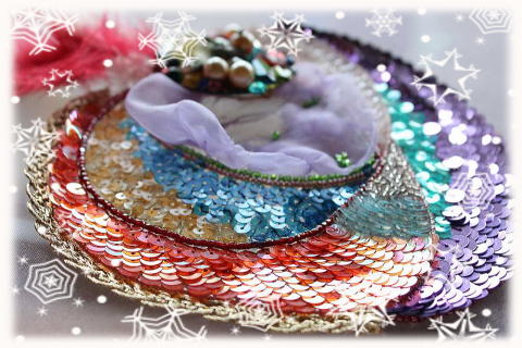 対してもう一人の方はなんとも派手ないでたちだった。室内でもかぶりっぱなしの帽子はそれだけならとてもエレガント。真っ赤で全体に透け感があるつばひろで、同じ色の薔薇のコサージュがついている。花芯にはラインストーンがキラキラ光っていた。ブラウスの胸元にはフェイクジュエリーを散りばめた丸いブローチにそれを取り巻くビーズの刺繍が見える。白い皮のパンツはサイドにスパンコールの花柄があり、動くたびに呼応してまた輝く。そして極めつけはレインボーカラーのブルゾンだ。明るい七色のマーブル模様をまとった太めの体は、ちょっとなつかしのスーパーボールを思わせる。黒い靴とバッグでかろうじて全体のバランスが保たれていた。