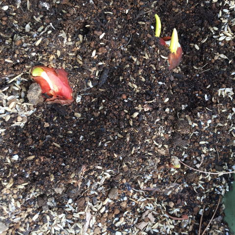 すでに芽が出てるので早く植えなくちゃ!