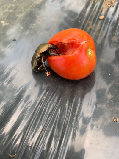 プチトマトをいただく黄金虫め!