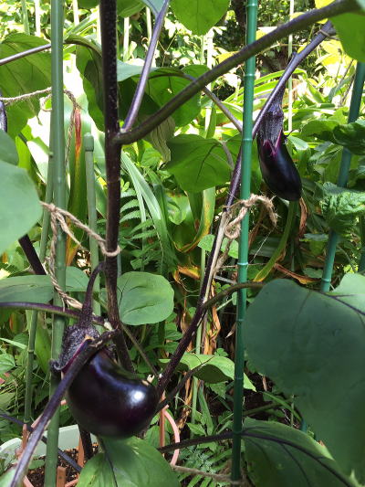 リーの庭ではナスがつやつや育っています♡