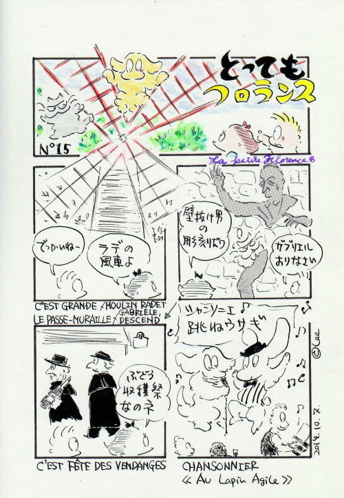 モンマルトルといえば何を思い浮かべるでしょうか?サクレクール寺院、ムーランルージュ、ユトリロなどエコール・ド・パリの画家達。ムーランとは風車の意、漫画のラデの風車はムーラン・ド・ラ・ギャレットというレストラン。壁抜け男の彫刻はマルセル・エイメの小説のモチーフです。
