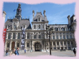 パリ市庁舎:Hotêl de ville(オテル・ド・ヴィル)は14世紀にエティエンヌ・マルセルにより4区の現在地に建設されました。パリ・コンミューンなど幾多の再建を経て、フランス・ルネサンス様式の華麗な姿を見ることができます。